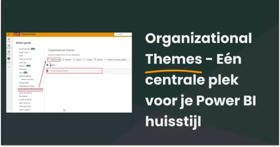 Met Organizational Themes upload je als beheerder één of meerdere thema’s via het Power BI Admin portal. Gebruikers selecteren deze vervolgens eenvoudig onder het menu “Thema’s → Organisatorisch”.