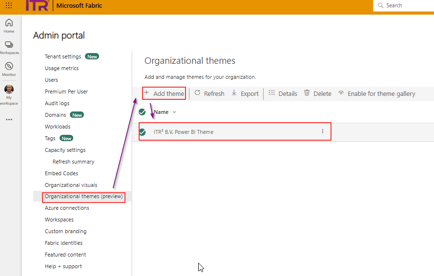 - Navigeer naar Organizational Themes (Preview)